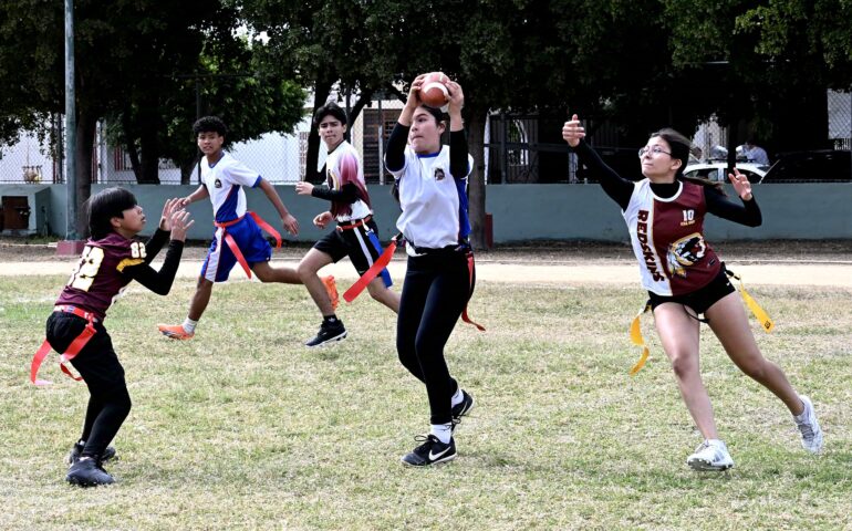 MAZATLÁN._ El representativo de la escuela Secundaria Federal 1, Guillermo Prieto, impuso condiciones en el playoff municipal del Torneo Escolar Tochito Flag NFL, al vencer en la final a la Secundaria Federal 9, Arturo Cundapí Ramos, en el campo de futbol americano de Villa del Rey.