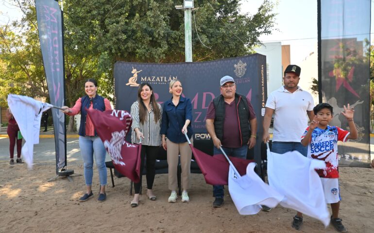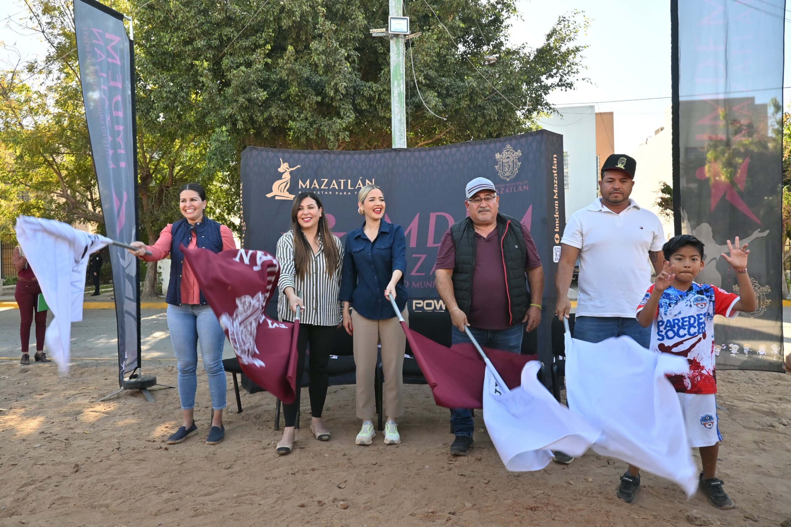 “Hoy vamos a trabajar por una encomienda que recibimos hace algunos meses y hoy cumplimos con un espacio más, llegando a este gran lugar que es Santa Fe, beneficiando la disciplina de futbol, un espacio que va directamente a la escuela de Paredes Soccer. Esto es parte de la gran encomienda que nos dio nuestra presidenta de atender el deporte en todo Mazatlán”, dijo Verde Rosas.